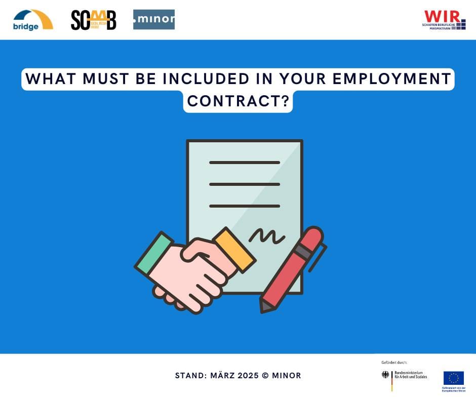 Almanya’da bir işe girecekseniz ve iş sözleşmesi imzalayacaksanız, sözleşmeyi imzalamadan önce iş sözleşmesinde neler olmalı sorusunun yanıtını bilmenizi tavsiye ediyoruz. İş sözleşmesini imzalamadan önce sözleşmede yer alan detaylara dikkat ederseniz, haklarınızın çok daha farkında olursunuz.
