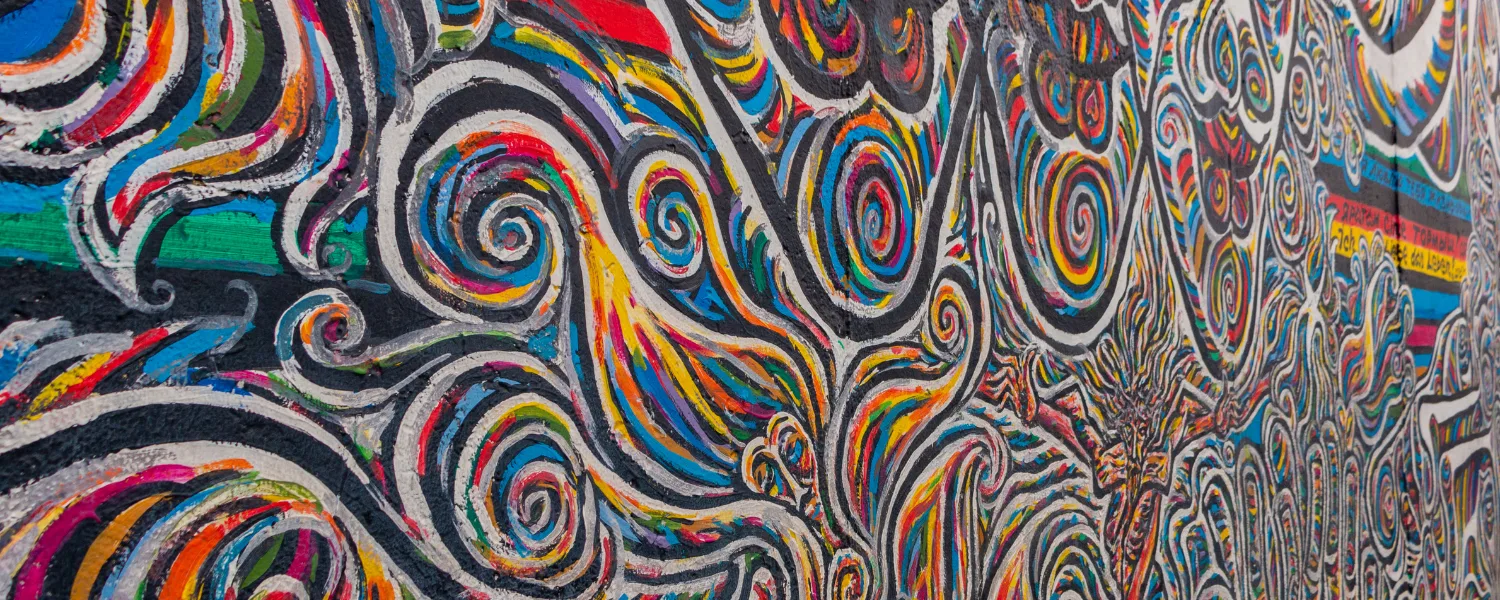 East Side Gallery, Friedrichshain’da 1,3 km’lik Berlin Duvarı kalıntısı üzerine yapılan açık hava galerisi. En ünlü eserler: Brejnev–Honecker öpücüğü ve duvarı delen Trabant.